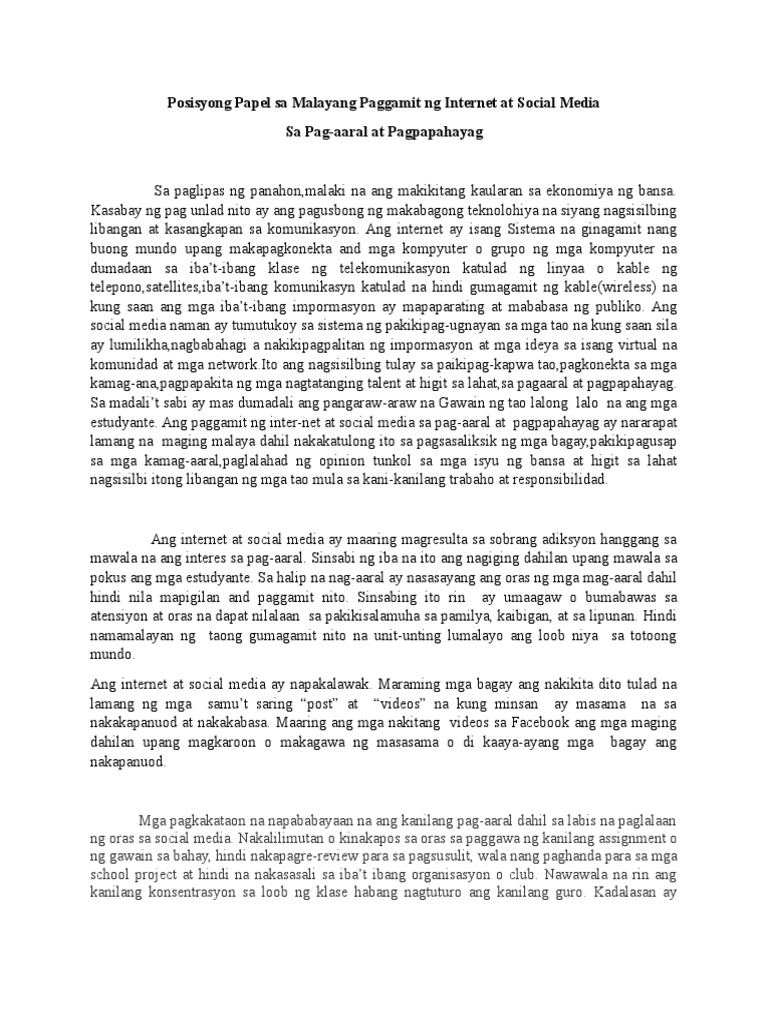 Posisyong Papel Sa Malayang Paggamit Ng Internet At Social Media